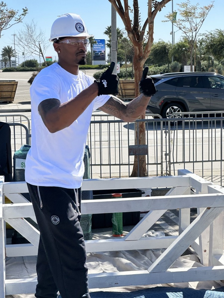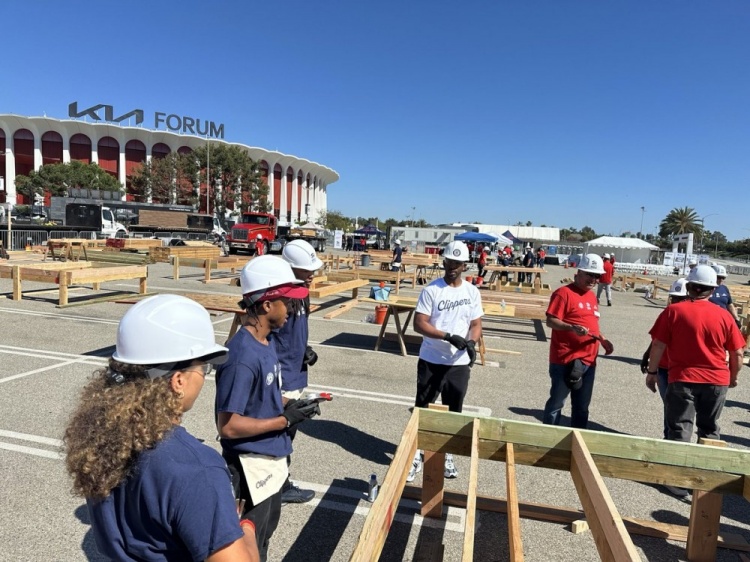 10月12日讯 今日快船参加当地社区活动,全队队员干起了木工活儿。