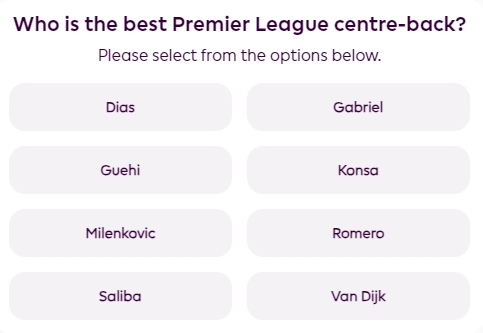 09月30日讯 今日阿森纳官方宣布与中卫萨利巴完成续约,据悉新合同将持续至2030年。英超官方也借这个机会发布了一则投票:谁是英超目前最好的中后卫?候选人有:鲁本-迪亚斯(曼城)、加布里埃尔(阿森纳)、格伊(水晶宫)、孔萨(维拉)、米伦科维奇(诺丁汉森林)、罗梅罗(热刺)、萨利巴(阿森纳)、范迪克(利物浦)。吧友们认为英超最佳中卫属于这8人中的哪一位呢?还是另有其人?